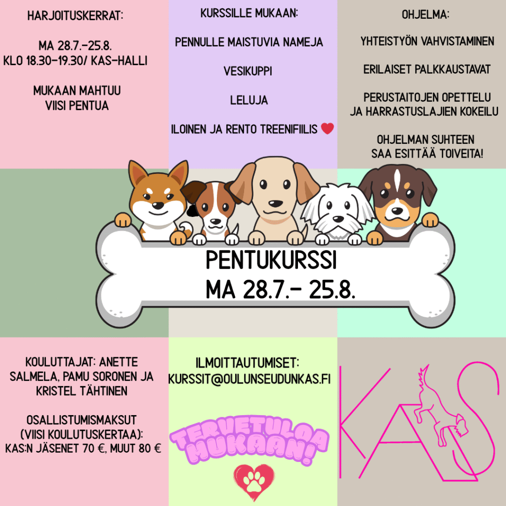 KAS ry järjestää kuukauden kestävän pentukurssin. Kurssi alkaa 24.7. Ilmoittautuminen on auki!