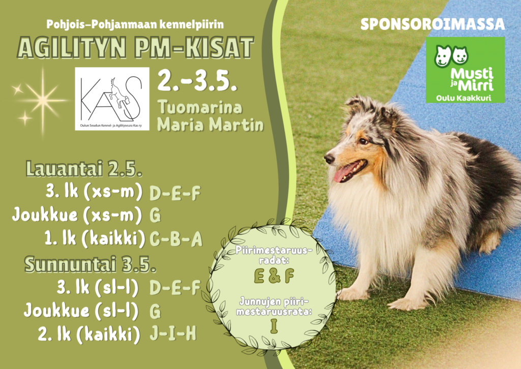 Tiina Leinosen ison kentän agilitytreenit sunnuntaina 15.3! Ryhmiä klo 8:30-18 välillä. Treeniaikaa 2 tuntia/ryhmä. Ilmoittautuminen 1.3. mennessä lomakkeella: https://docs.google.com/forms/d/e/1FAIpQLSfjlbOcGy4-ToPke56NYF1qLqJ0gpN9oQq1ltKnACi-vntNUg/viewform